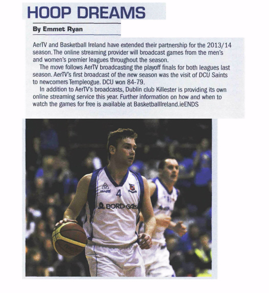 The move follow’s Aertv broadcasting the playoff finals for both leagues last season. Aertv’s first broadcast of the new season was the visit of DCU Saints to newcomers Templeogue. DCU won 84-79.