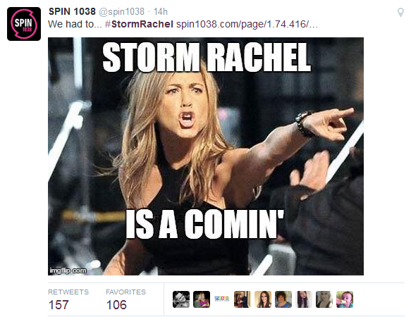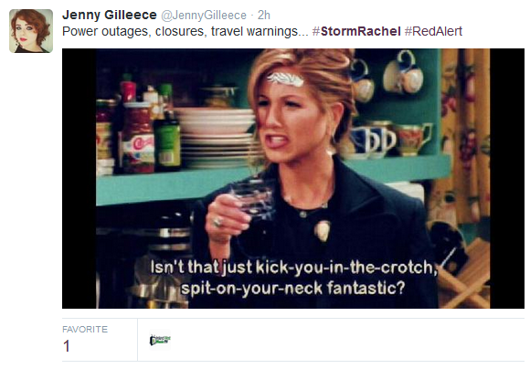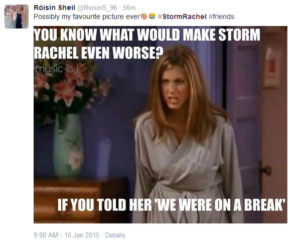 Of course there was the obligatory link with Storm Rachel and Rachel Green